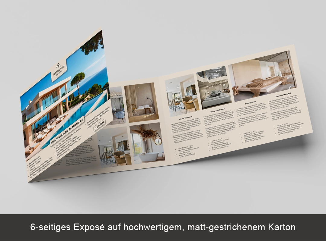 Wir geben Ihrer Immobilie ein unverwechselbares Gesicht. Durch kreative Exposés, hochwertige Visuals und starkes Branding sorgen wir dafür, dass Objekte professionell präsentiert und gezielt wahrgenommen werden – von der ersten Anzeige bis zum erfolgreichen Verkauf.