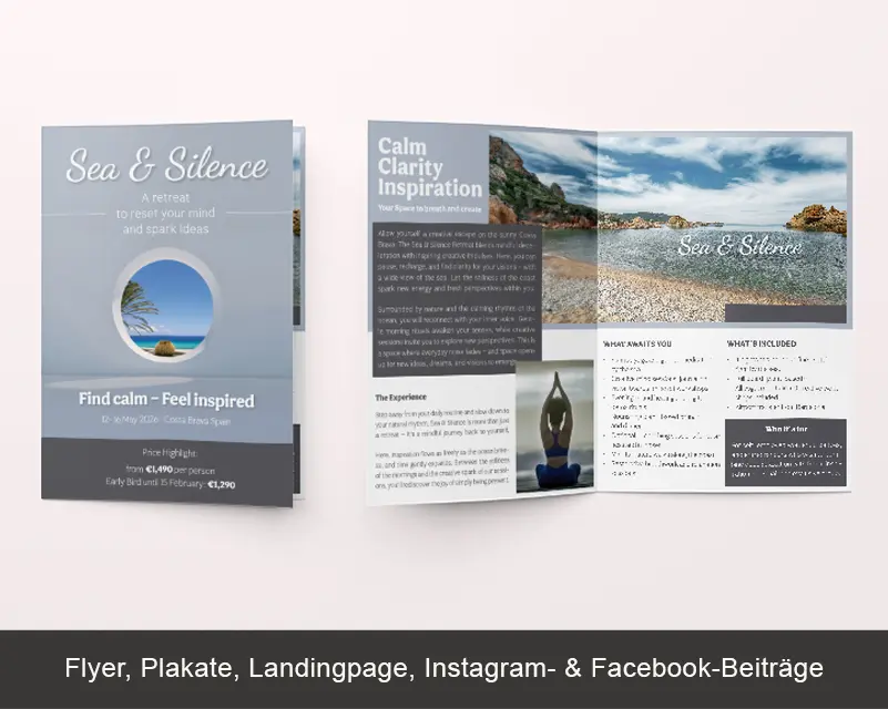 Wir gestalten Erlebnisse, die bleiben. Für private Events wie Hochzeiten, Jubiläen oder Feiern entwickeln wir Designs, die Emotionen wecken und Erinnerungen schaffen. Bei professionellen Veranstaltungen und Retreats sorgen wir für klare Kommunikation, visuelle Konzepte und Medien, die Professionalität ausstrahlen und Teilnehmer nachhaltig beeindrucken. So verbinden wir Emotion und Struktur in einem stimmigen Gesamtauftritt.